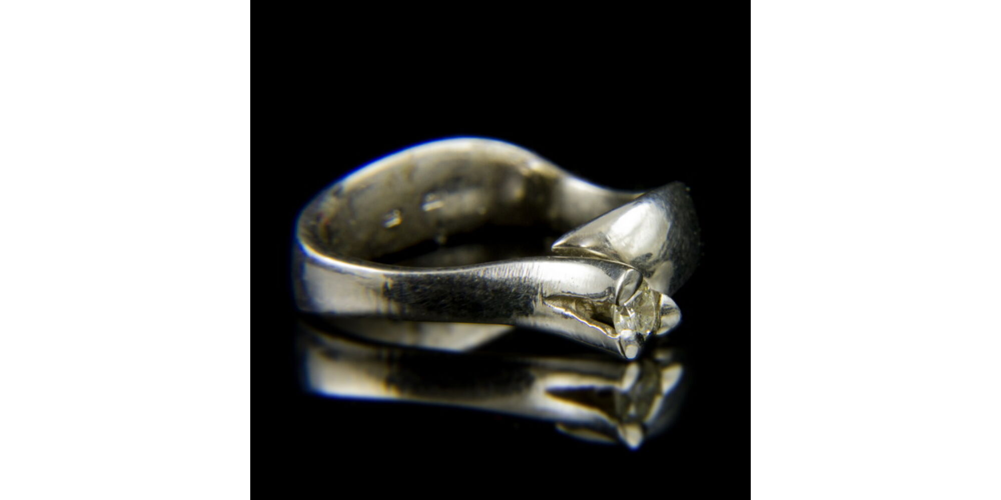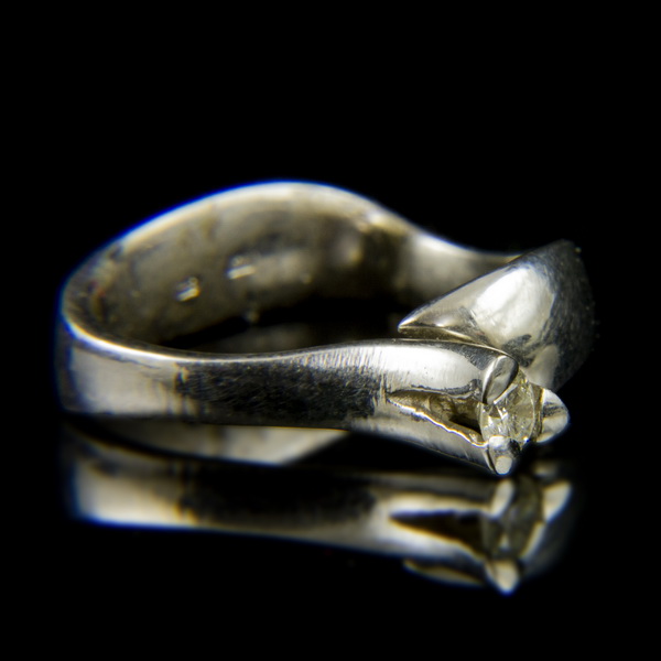14 K white gold ring with a diamond in the bouton setting (0.16 ct)