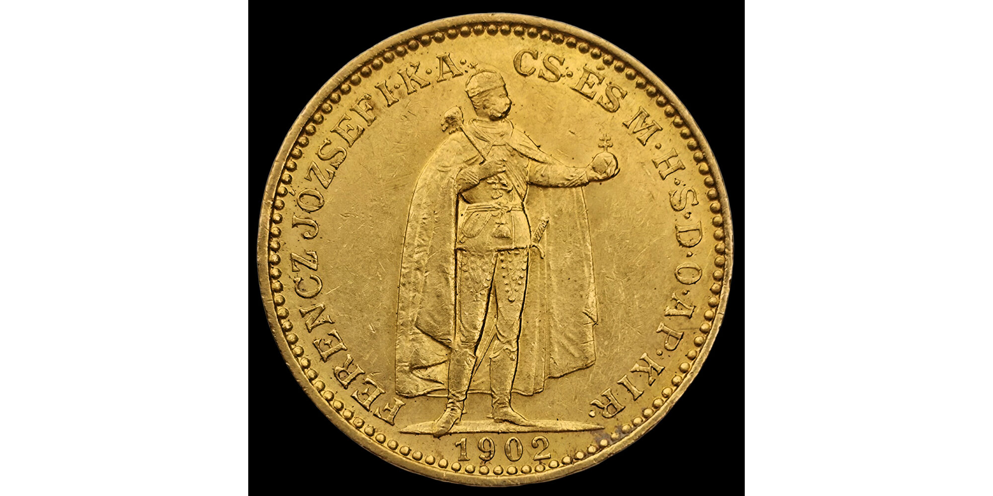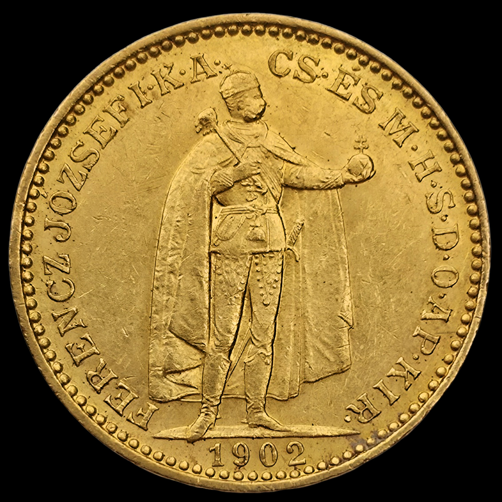 20 Korona 1902 KB Ferenc József. 900%. ezrelék (21.6KT-os) finomságú arany érme. Tömege: 6.76 gramm. Átmérője: 21 mm. Körmöcbánya. Készült összesen: 522 598 darab. Fine.