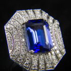 In our shop there is one tanzanite stone, which is located in the center of a beautiful ring surrounded by brilliant-cut diamonds. It weighs nearly 12 carats, has an octagonal, faceted cut and a slightly purple blue color.