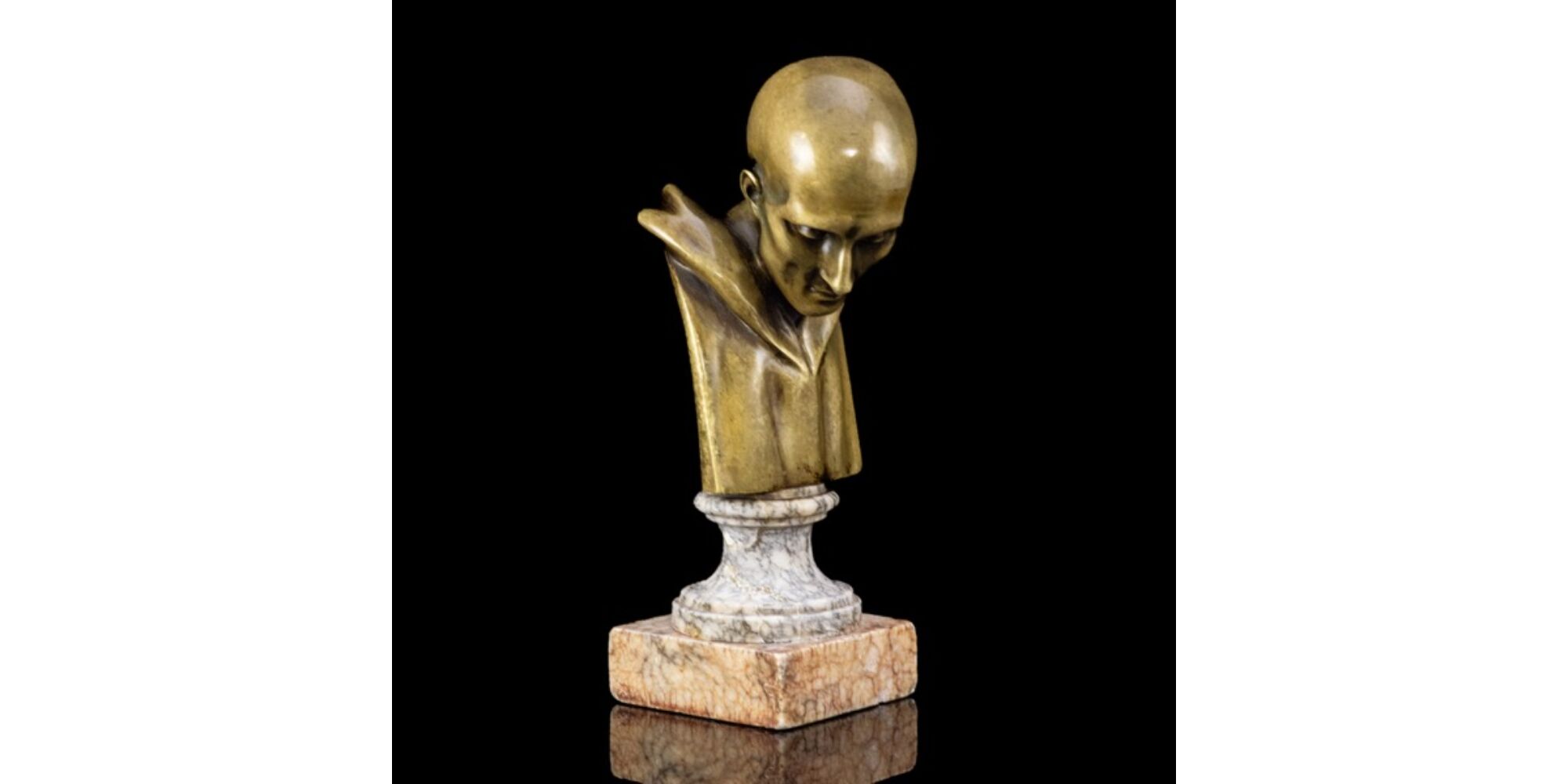 Cast bronze bust of an unknown male monk on a marble base. Dimensions: 26 x 10 x 11 cm. Marked: Donatello 1486 Florenz. Presumably the work of an Italian sculptor, from the early 1900s.