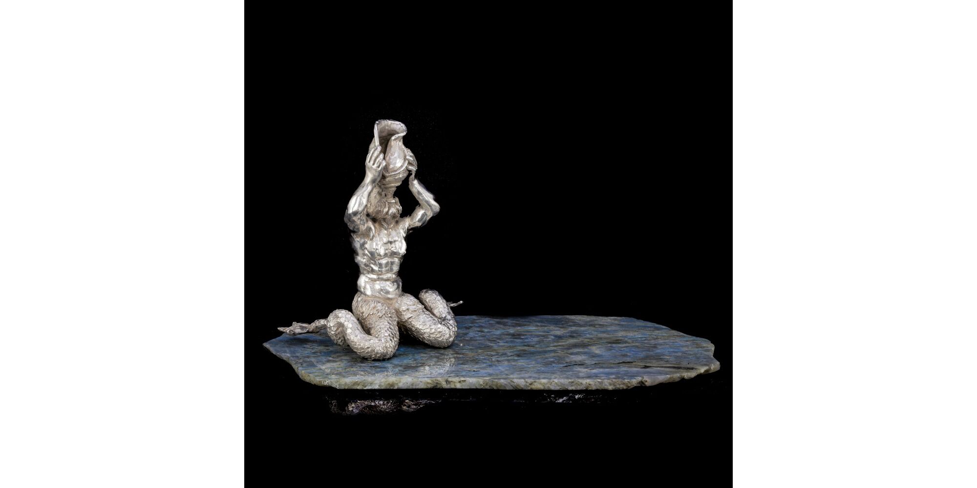 Ezüst Triton figura labradorit talpon- íróasztali dísz