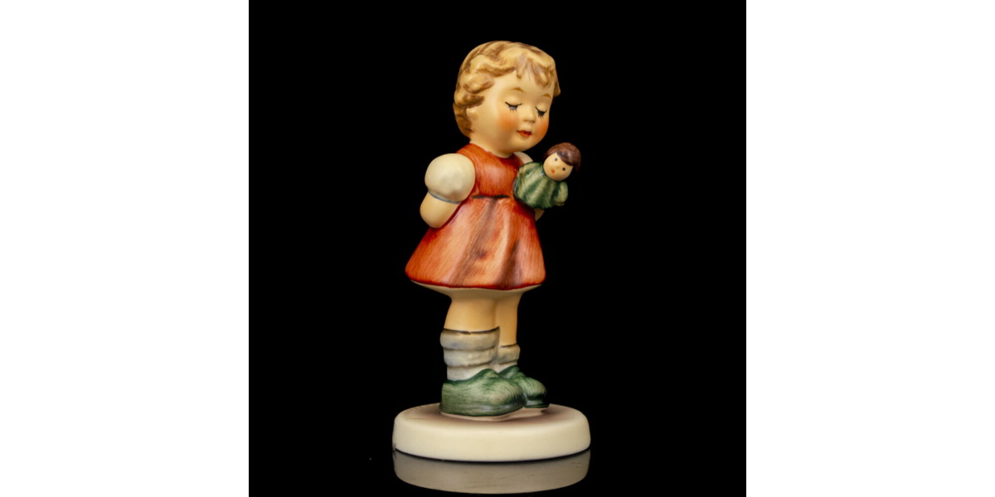 Festett, részben mázas porcelán-kerámia, méretei: 9,5 x d:4,5 cm. Jelzett: Goebel Germany 2001/2002 használt márkajelzéssel, TMK-8 formaszámmal. "Pupet Princess".