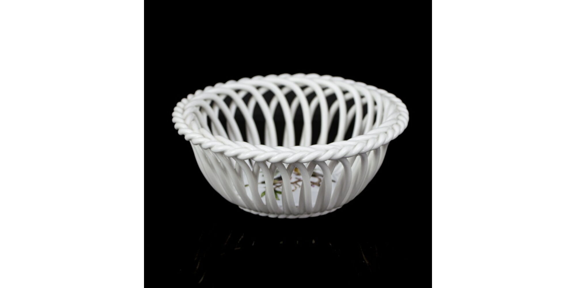 Rothschild dekorral festett, mázas Herendi porcelán kosárka kínáló, méretei: 4 x d:9 cm. Jelzett: XX. század II. fele Herendi márkajelzéssel, 7373 formaszámmal.