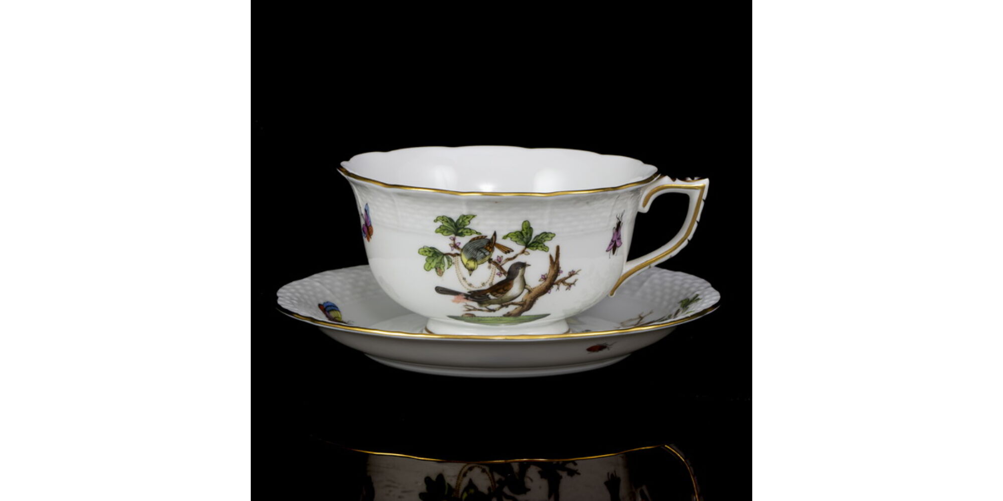 Herendi teáscsésze és alj (RO) Rotschild dekorral