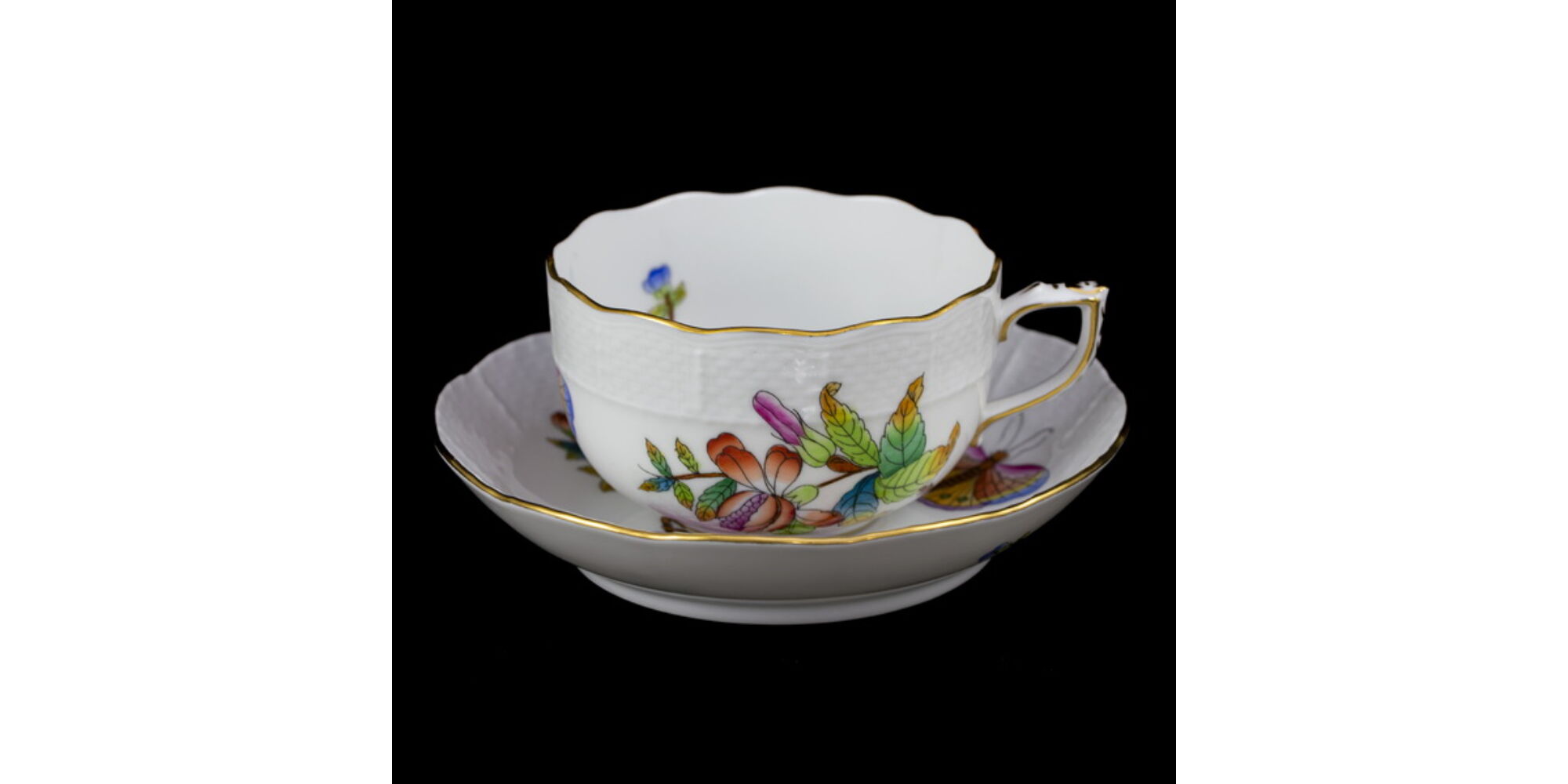 Herendi teascsésze és alj Viktória (VBO) dekorral