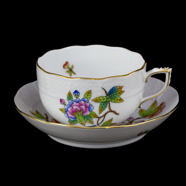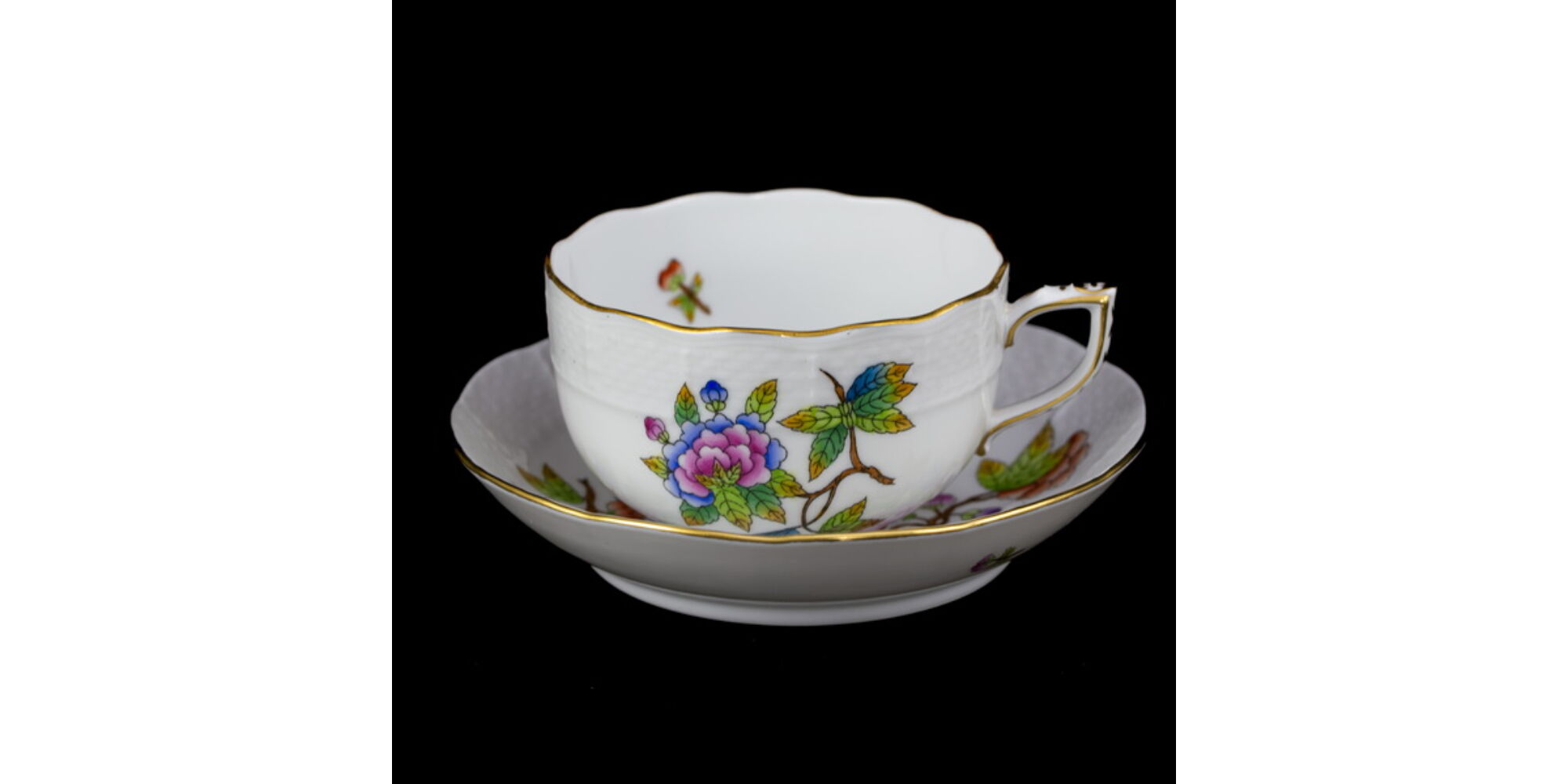Herendi teáscsésze és alj Viktória (VBO) dekorral