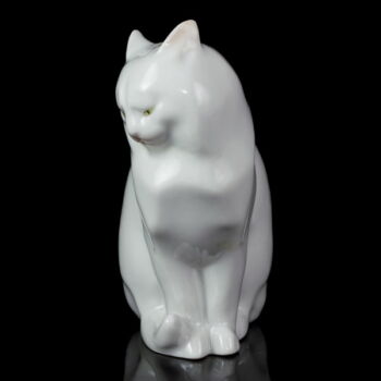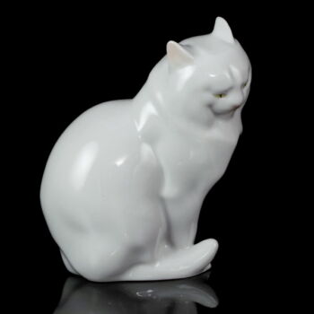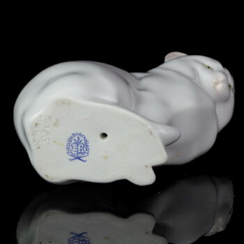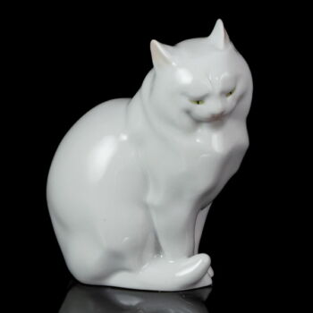 Festett, mázas Herendi porcelán fehér macska figura, méretei: 12 x 10,5 x 5,5 cm. Jelzett: XX. század második fele Herendi márkajelzéssel, 5383 formaszámmal.