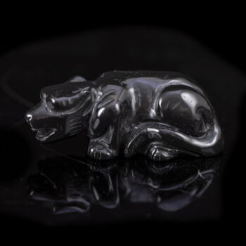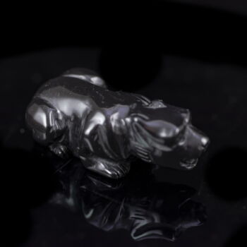 Hand-carved black onyx wild cat (tiger) figurine, talisman. Dimensions: 17 x 25 x 50 cm. China, second half of the 20th century.
