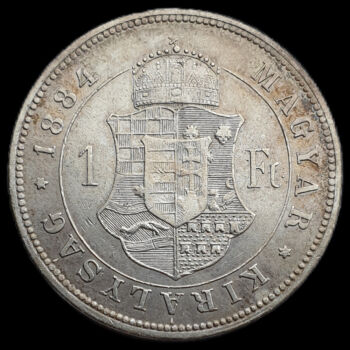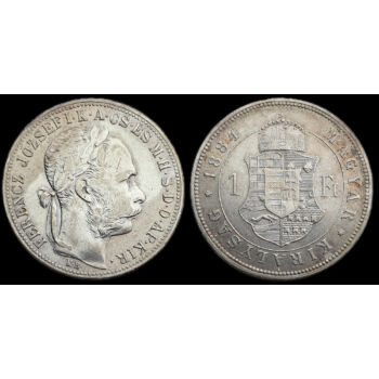 1 Forint 1884 KB. Ferenc József. Tömege: 12.3 gramm. Átmérője: 29 mm. 900%. ezrelék finomságú ezüst. Peremén: BIZALMAM AZ ŐSI ERÉNYBEN. Készült összesen: 1.721.725 darab.