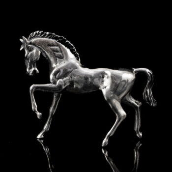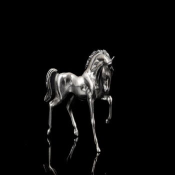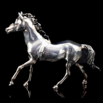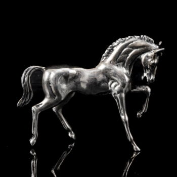 800-as finomságú ezüstből készült mini ló figura. Nettó tömege: 74,3 gramm; MéreteI: 6 x 7 x 2 cm. Jelzett: 1968-tól használt olasz fémjellel, valamint 2016-tól használt magyar fémjellel egyaránt.