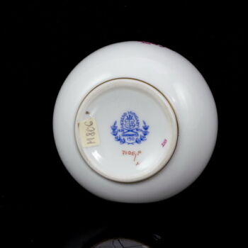 Pink színű indiaikosár dekorral festett, mázas Herendi palackvázácska. méretei: 13 x d:7,5 cm. Jelzett: XX. század II. fele Herendi Porcelán manufaktúra márkajelzéssel és 7105/P formaszámmal.