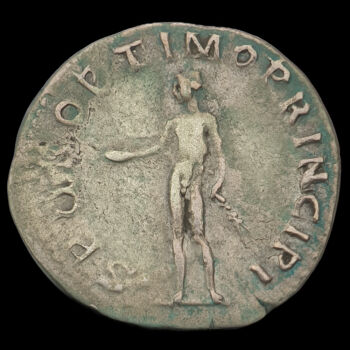Traianus római császár (Kr.u. 98-117) ezüst denár. RIC 276. Kr.u. 112-114. Verdehely: Róma. Tömege: 3.28 gramm. Mérete: 20 x 19 mm. Előlap: IMP TRAIANO AVG GER DAC P M TR P COS VI P P (Traianus jobbra néző babérkoszorús portréja) Hátlap: S P Q R OPTIMO PRINCIPI (Genius balra, kezében patera és kukorica). |