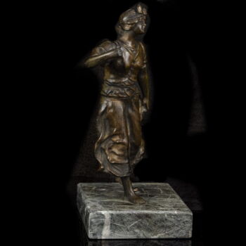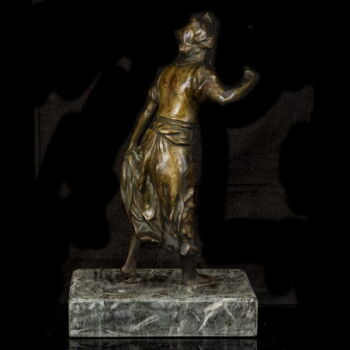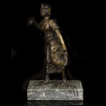 Barefoot female figure, bronze sculpture on a stone pedestal. Dimensions: 24.5 x 14 x 11 cm. Unmarked, early 20th century.