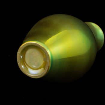 Zöld eozin mázas Zsolnay porcelán kisváza, mérete: 14 x d:8 cm. Jelzett: modern Zsolnay márkajelzéssel.