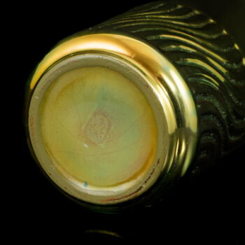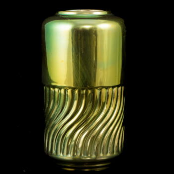 Zöld eozin mázas porcelán váza, henger formájú, dombornyomott csavart mintázattal. Méretei: 17 x d:9,5 cm. Jelzett: modern Zsolnay márkajelzéssel.