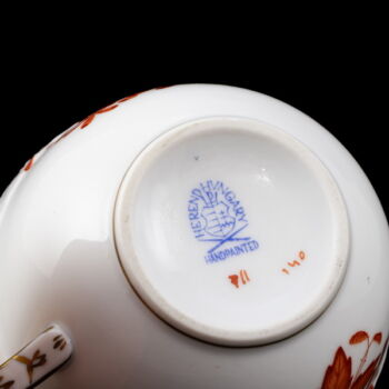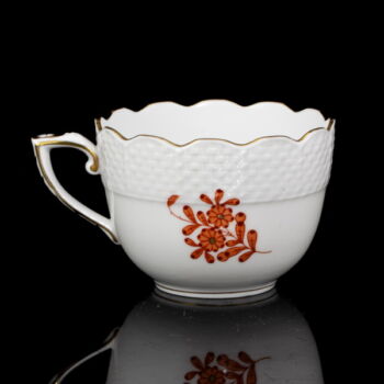 Orange Apponyi dekorral festett Herendi porcelán kávéscsésze (alj nélkül!) Arannyal festett füllel és kontúrozott szájperemmel. Jelzett: XX. század második fele Herendi márkajelzéssel, 711-es formaszámmal.