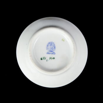 Rotschild dekorral festett, aranykontúrozott RO Rotschild mintás kistálka, mérete: d:7 cm. Jelzett: XX. század második fele Herendi márkajelzéssel, 681/RO formaszámmal.