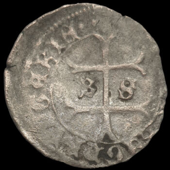 Hunyadi János (1446-1452) ezüst denár. Buda, B-S. (1447-1450). Tömege: 0.80 gramm. Átmérője: 17 mm. ÉH: 486 d. ELŐLAP: TEMPORE IO GVBERNATOR (Tempore Iohannis Gubernatoris, János kormányzó idejében). HÁTLAP: + MONETA REGNI VNGARIE (Magyarország pénze). |
