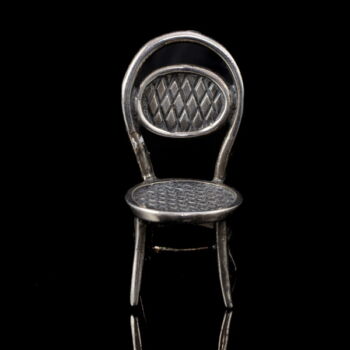 925-ös finomságú ezüst, nettó tömege: 9,3 gramm; méretei: 4 x 2 x 2 cm. Jelzett: 1944-68 között használt olasz fémjellel.