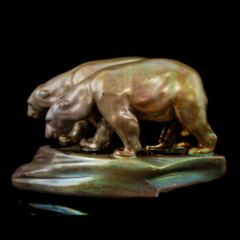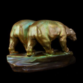 Zsolnay eosin-glazed faience bear couple
