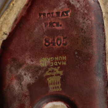 Eosin-glazed Zsolnay faience bear pair, dimensions: 12 x 19 x 9 cm. Marked: early 20th century with five-temple Zsolnay brand mark, mold number 8405.