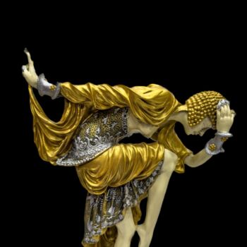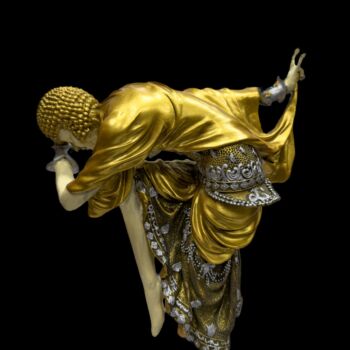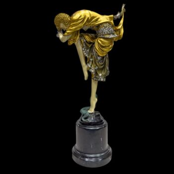 Arany festett, öntött bronz art deco táncosnő figurája fekete márvány talapzaton. Méretei: 44,5 x d:20 cm. Jelzett: D.H Chiparus. XX. század vége.