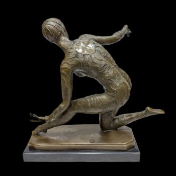 Öntött bronz női táncosnő szobor art deco modorban, fekete márványtalapzaton. Méretei: 38,5 x 41 x 24 cm. Jelzett: D.H Chiparus; J.L  Paris L N.