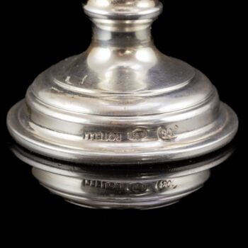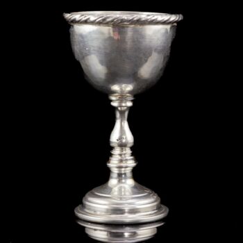 800 fine silver. Net weight: 96.3 grams. Dimensions: 9 x d:5cm. Round stemmed glass with a three-piece punched chalice. Marked: Italian hallmark from between 1944-68, Rotelli maker's mark.