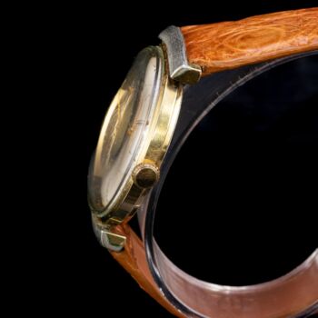 | Aranyozott acéltokban automata szerkezet, aranyozott indexes, percbeosztásos számlap centrál mutatókkal. Tok mérete: 34 mm. Jelzett Tok, Számlap, Szerkezet: Doxa; 6430316;11558 7 tokszámmal. Svájc, 1960-70 körül. Működik. Cserélt, új bőrszíjjal. | |