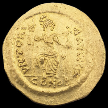 II. Iusztinosz bizánci császár (Kr.u. 565-578) arany solidus. Verde: Konstantinápoly. Tömege: 4.2 gramm. Átmérője: 21 mm. good VF.