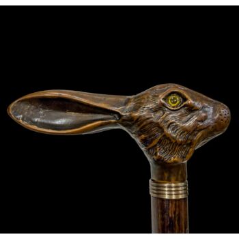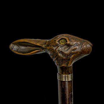 Mahagóni sétabot nyúlfejet formázó, festett műgyanta markolattal. Hossza: 102 cm. Jelzett: Fayet Cannes jelzéssel. Modern.