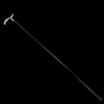 Ébenfa sétabot, hajlított legömbölyített hullámvonalú, krómozott botfejjel. Hossza: 102 cm. Jelzett: Fayet Cannes Modern.