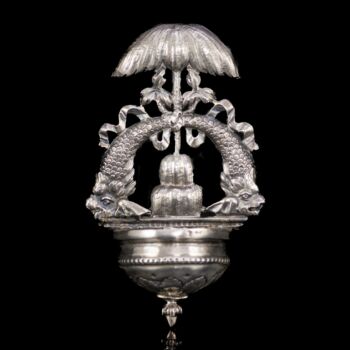 Olasz antik ezüst szenteltvíztartó (1810-1872) delfinekkel