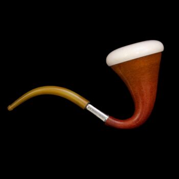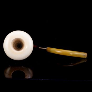 Tanzániai lopótökkel kombinált, esztergált tajték pipafejjel, borostyánt imitáló műanyag szipkával. Méretei:17 x 6 cm. XX. század eleje. Jelzés nélkül.