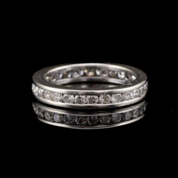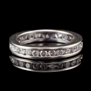 14 karátos fehérarany sportgyűrű, Bruttó tömege: 3,94 gramm. 29 darab modern briliáns csiszolású gyémánttal Cca.0,58 ct.(M1;C;/M-N; P1-P3) Jelzett: 1999 utáni behozatali fémjellel. Gyűrű mérete:55.