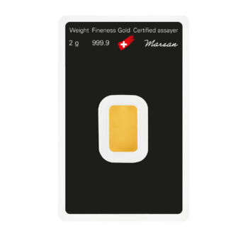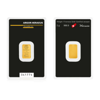 Refiner: Argor-Heraeus (Switzerland) Weight: 2 grams Fineness: 999,9 / 1000 Dimensions: 19.0 x 11.4 x 0.6 mm Sealing: Original plastic case with serialized manufacturer's certificate |