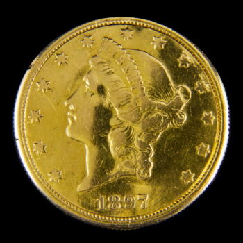 Coin watch in a $ 20 coin, French import hallmark from after 1893, 1897 coin, 900 of gold fineness coin + case, 36.8 gr.