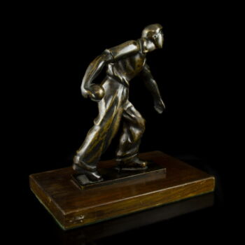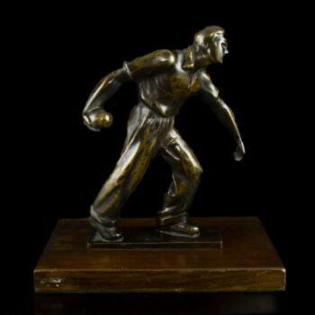 Bronze bowler man's figure on a wooden base. From around 1960 - 1980, dimensions including the base: 25 x 24 x 15 cm