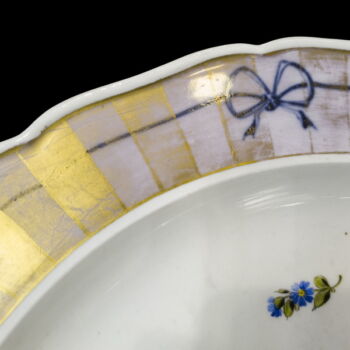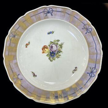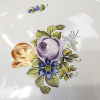 Festett, mázas, porcelán, d: 38 cm. Tányér tükrében tulipános, rózsás csokorral. Arany festése erősen kopott. Jelzett: máz alatti kék festett Alt-Wien márkajelzés, valamint masszába nyomott 95 formaszám.