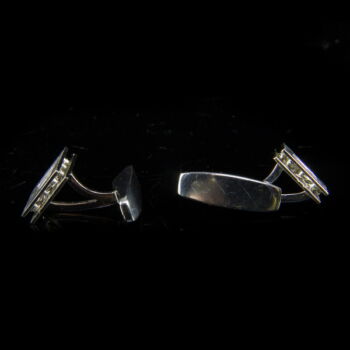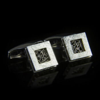 | 14 K white gold, 9.67 grams. Square-shaped openwork button head: 10 x 10 mm. Varga Designe jewelry (jeweller Miklós Varga). Marked: with a domestic hallmark from between 2006-2016, with the maker's mark of Miklós Varga. | |