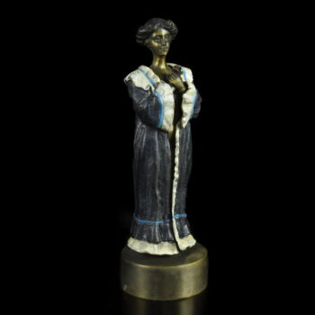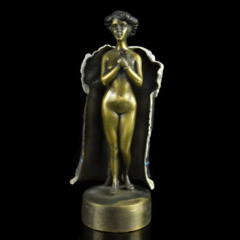 Painted, cast bronze small figurine. Under a hinged outer surface there is a female nude figurine. Height:17,5 cm. Hungary, XXI. century.