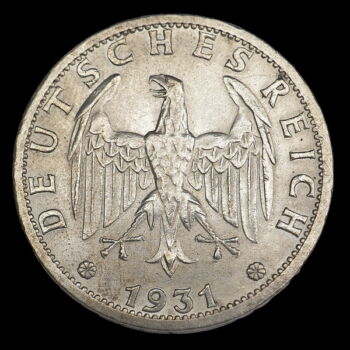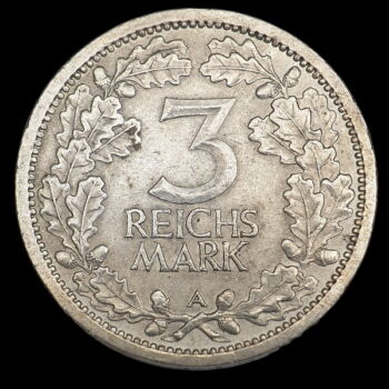 3 Reichsmark 1931 A. 500%Â thousandths fine silver coin. Weight: 15 gr. Diameter: 30 mm.