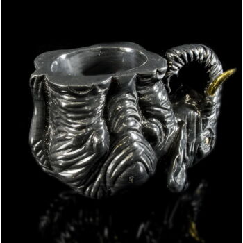 Obsidian elephant figure with 88 zolotnik fineness goldplated silver tusks and diamond eyes. (cca: 0.02 ct). Gross weight: 264 gr, dimensions: 6 x 9 x 6 cm.