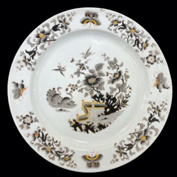 Porcelán falitányér kínaizáló fekete-naranycs dekorral