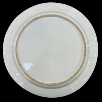 Festett, mázas porcelán, kínaizáló dekorral, d: 36 cm. XX. század eleje. Jelzés nélkül.