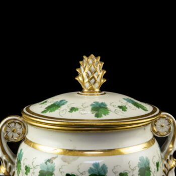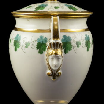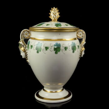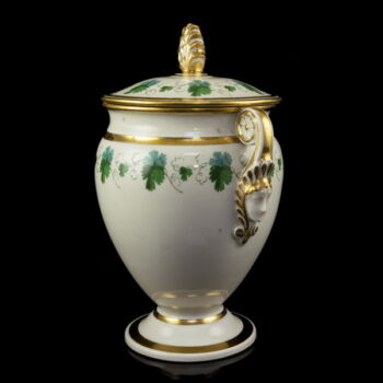 Festett, mázas porcelán cukortartó fedelével, aranyozott részletekkel, 20,5 x d:16 cm. Jelzett: máz alatti kék Alt-Wien márkajelzéssel, masszába nyomott 825 évszám jelzéssel. Bécs, 1825.