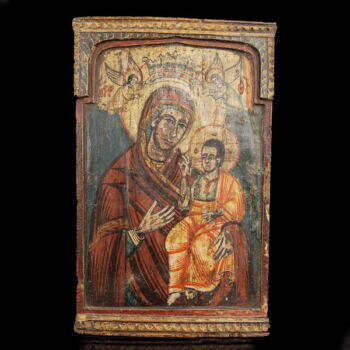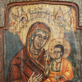 Middle part of a triptych of a Serbian or Greek icon, carved on wooden board, painted in oil. Dimensions: 31 x 19 cm. Restored. Greece, possibly Serbia, XVIII. century.