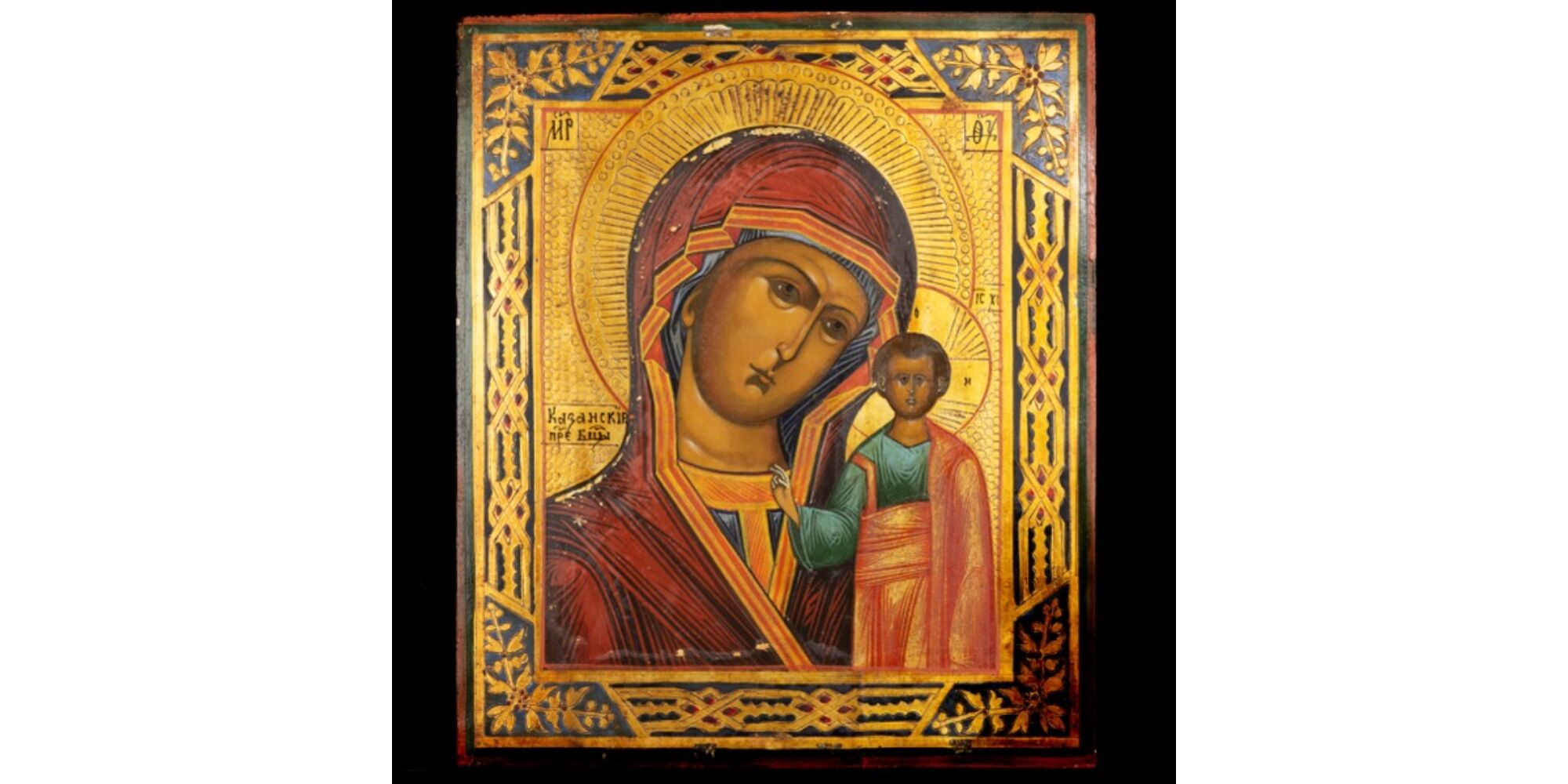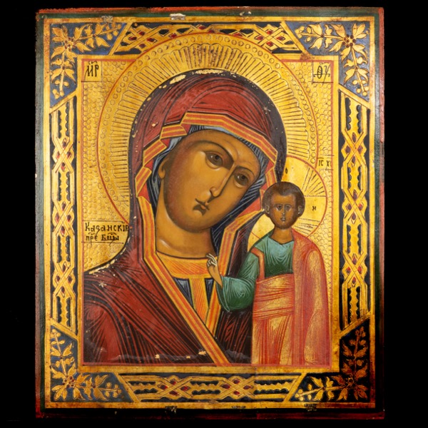 Icon depicting the Mother of God of Kazan. Egg tempera, wood. Late 19th century, Russian. Size: 31x26.5cm. With minor wear.