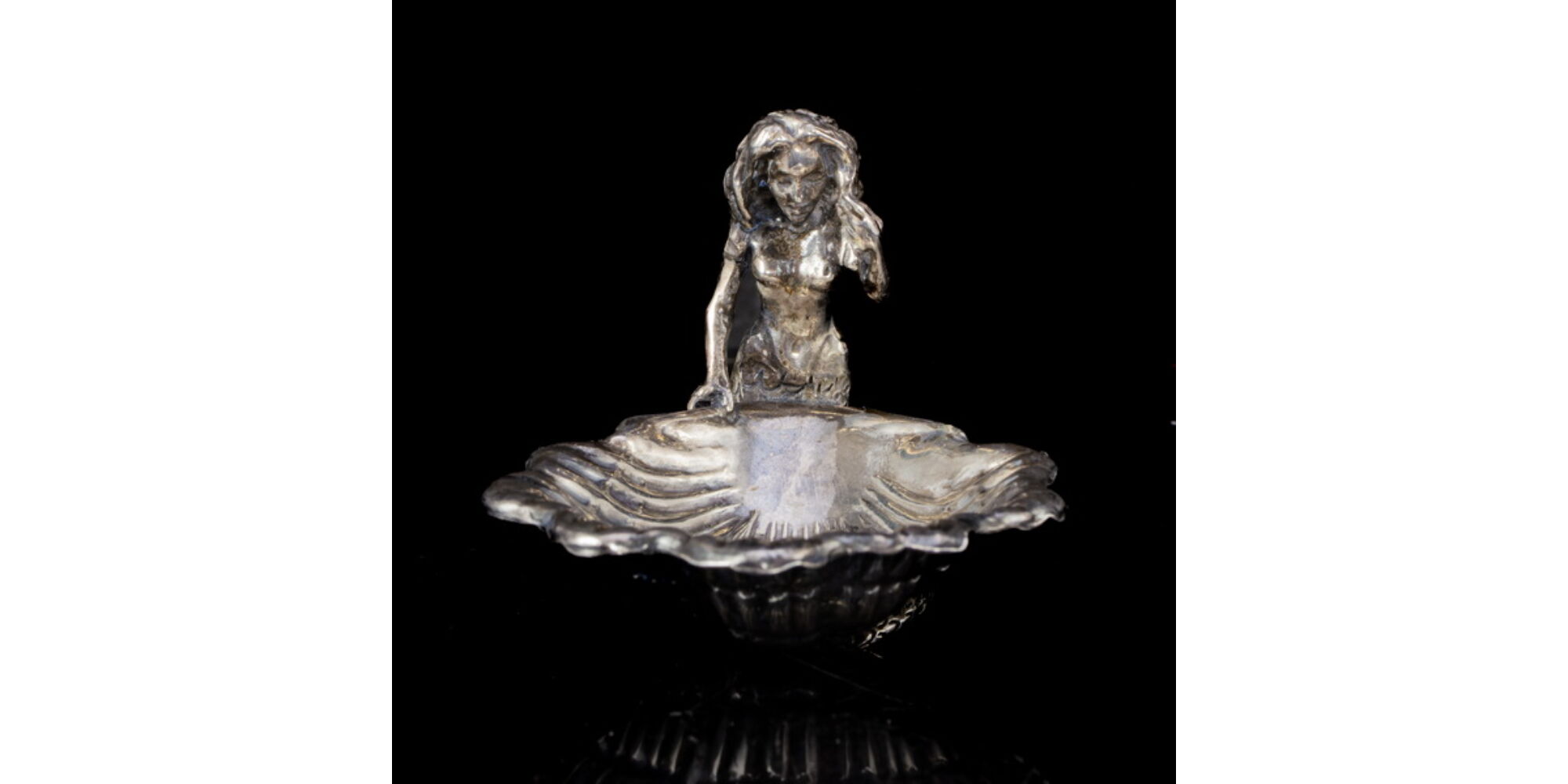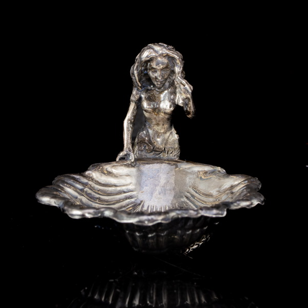 Mini ezüst kagyló tálka hableány figurával