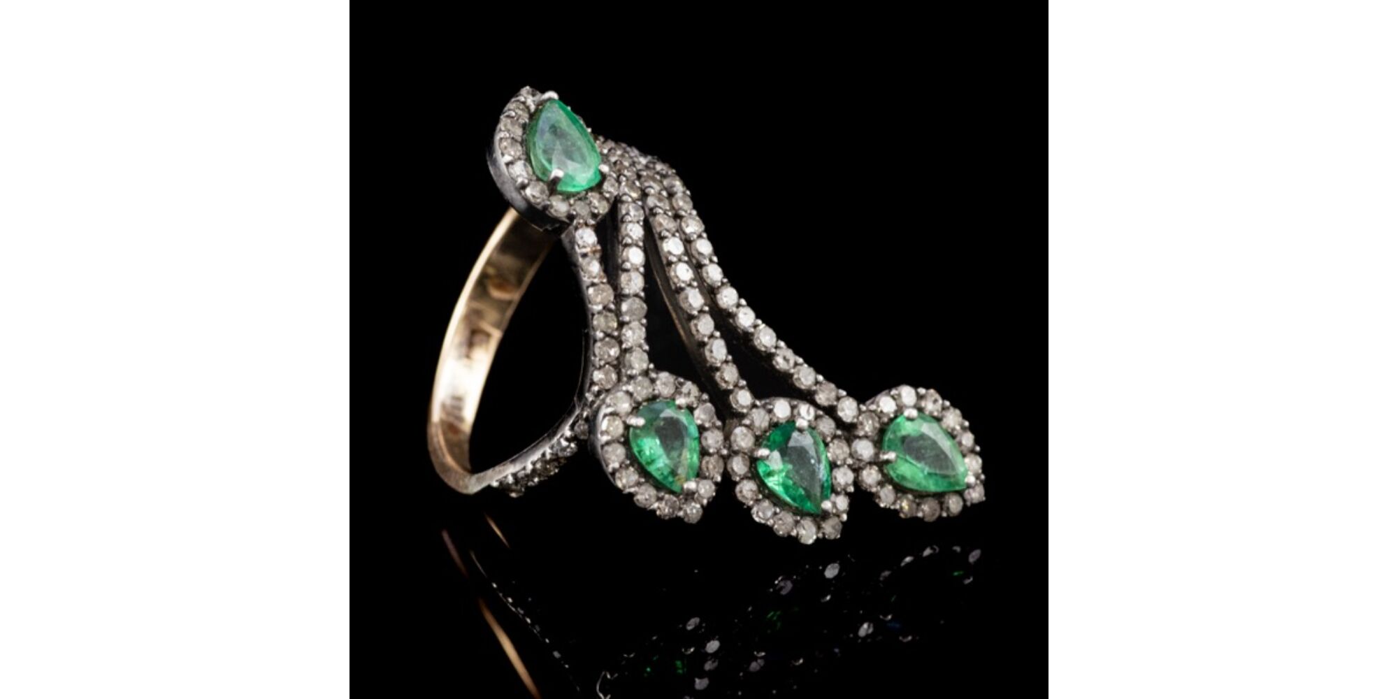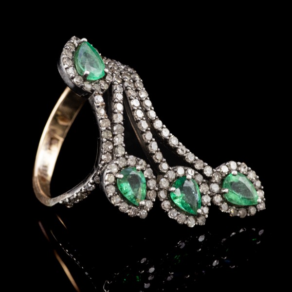 Női gyűrű csepp forma smaragd kövekkel